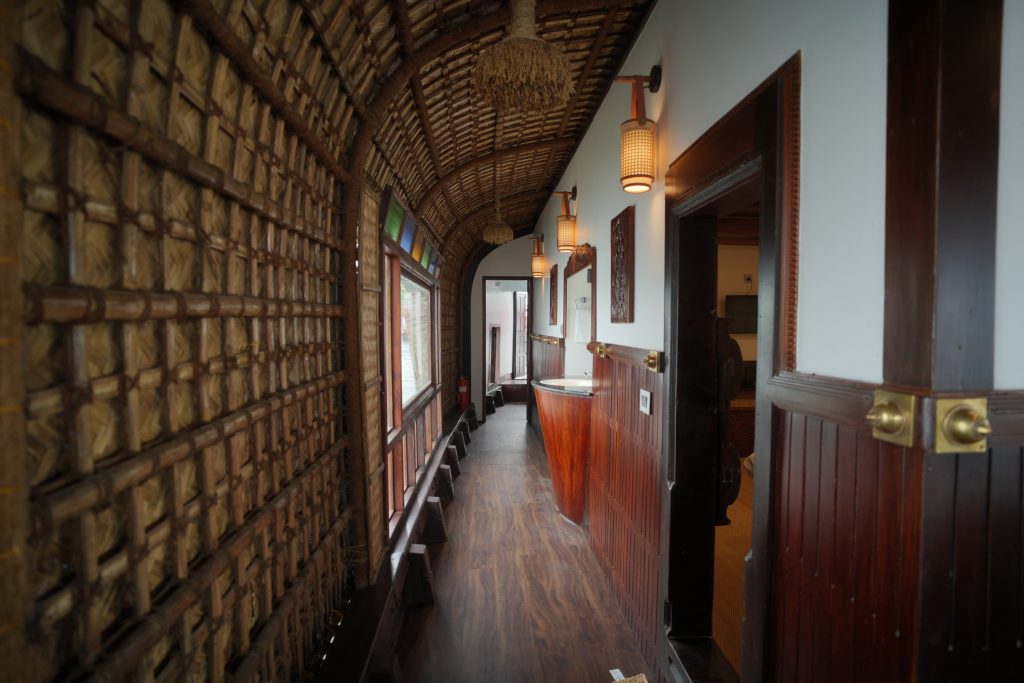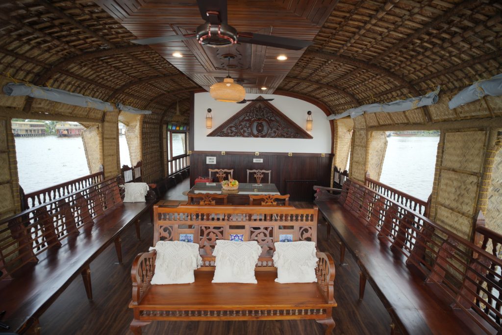 Enjoy delicious meals freshly prepared by our onboard chef in the cozy dining area, or simply relax in the comfortable living area with its plush sofas and TV. With our experienced crew catering to your every need, you can sit back, relax and enjoy a worry-free stay on the backwaters of Kerala. Book now and discover the ultimate in luxury and relaxation with Royalrivers.